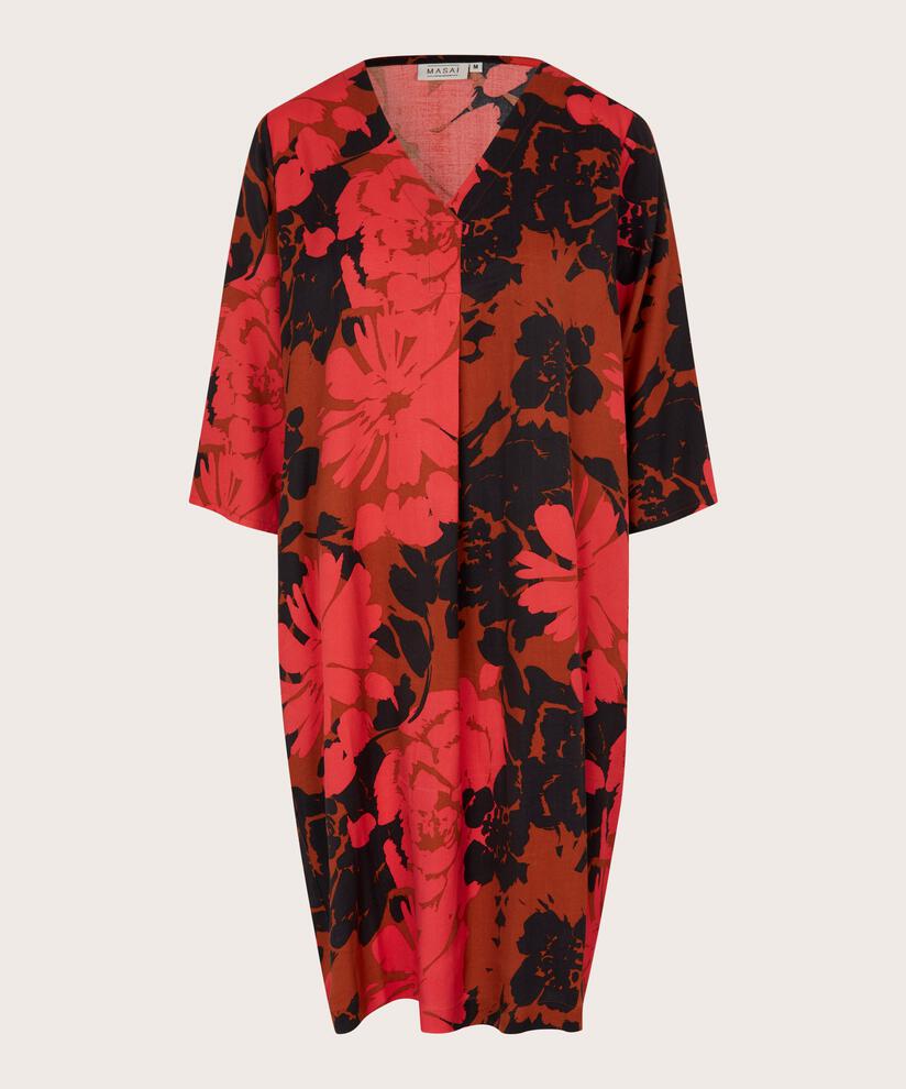 If you love beautiful prints, this dress is just for you with its exuberant floral print. The dress has a smart balloon effect that creates a beautiful silhouette and makes it great to wear. Also note the deep V-neckline that emphasises the elegant and feminine look. The dress is also designed with discreet pockets - just for you to put your hands in. Style the dress with sparkling jewellery for a complete feminine look.